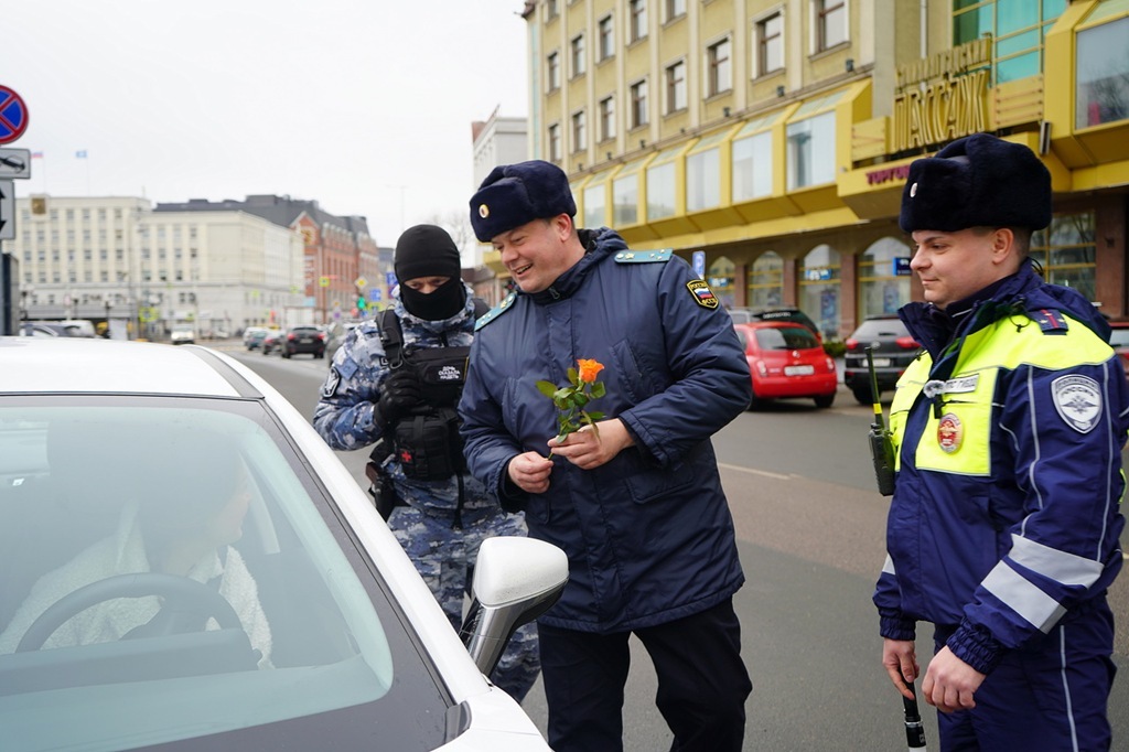 В Калининградской области в преддверии Международного женского дня сотрудники УФССП и Госавтоинспекции вышли в совместный рейд, чтобы поздравить женщин-водителей. Акция «Вам, любимые!» уже стала традиционной — приставы и автоинспекторы дарят девушкам цветы и тёплые слова уже несколько лет подряд.