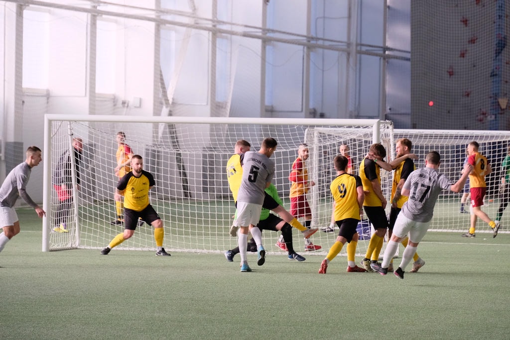 После школьников арену заполнили корпоративные команды. Международный состав участников добавил турниру колорита, а прошлогодние победители из «Янтаря» вновь оказались под пристальным вниманием соперников. Самые громкие трибуны достались «Литейщикам», чьи болельщики превратили матчи в настоящее шоу.
